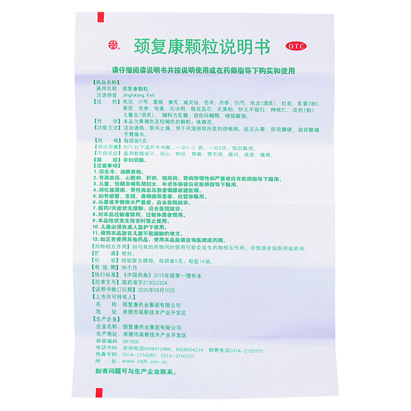 • 商品名称:承德 颈复康颗粒 5g*14袋/盒