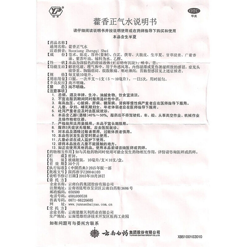 - 商品名称:云丰 藿香正气水 10ml*10支/盒