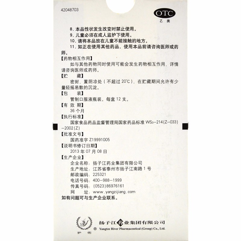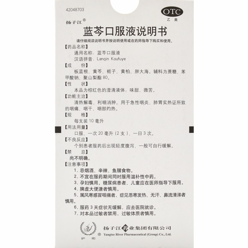 - 商品名称:扬子江 蓝芩口服液 10ml*12支/盒
