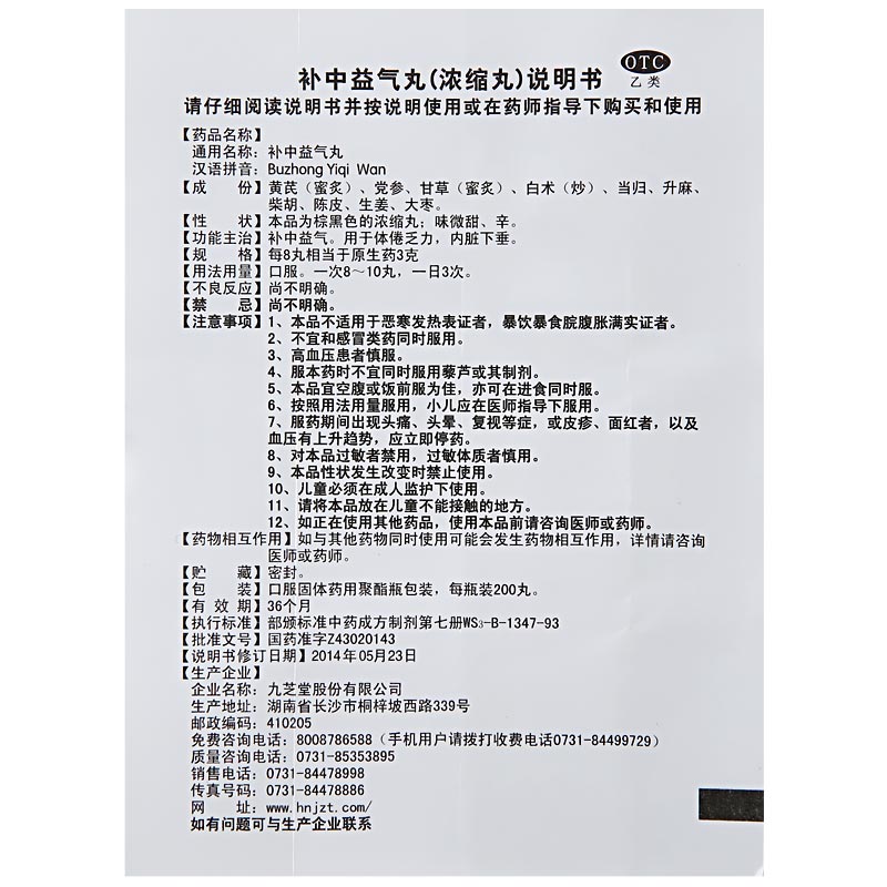 - 商品名称:九芝堂 补中益气丸 200丸/瓶