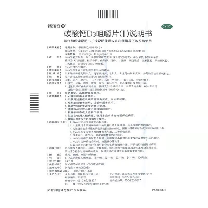 - 通用名称:钙尔奇 碳酸钙D3咀嚼片(II)