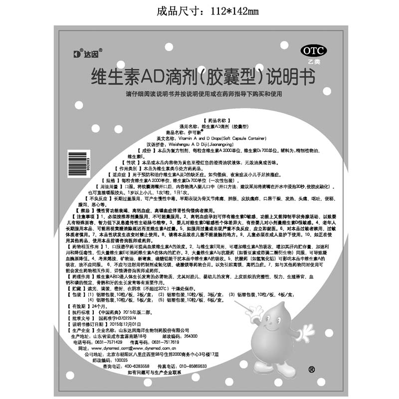 - 通用名称:维生素AD滴剂一岁以上伊可新(胶囊型)