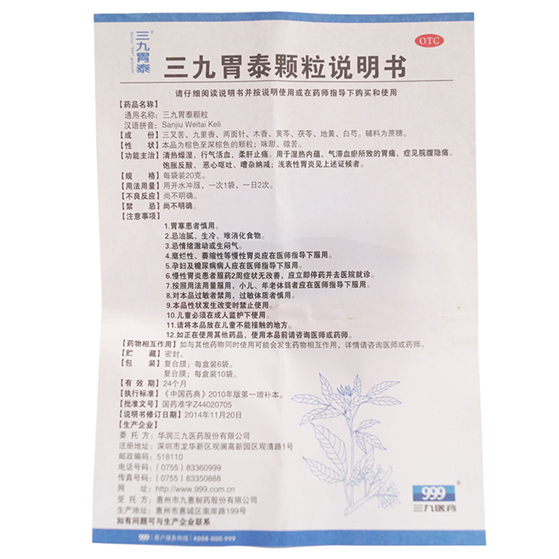 - 商品名称:三九胃泰颗粒 20g*6袋/盒