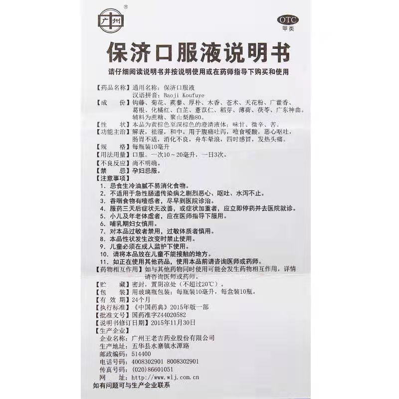 - 商品名称:王老吉 保济口服液 10ml*10瓶/盒