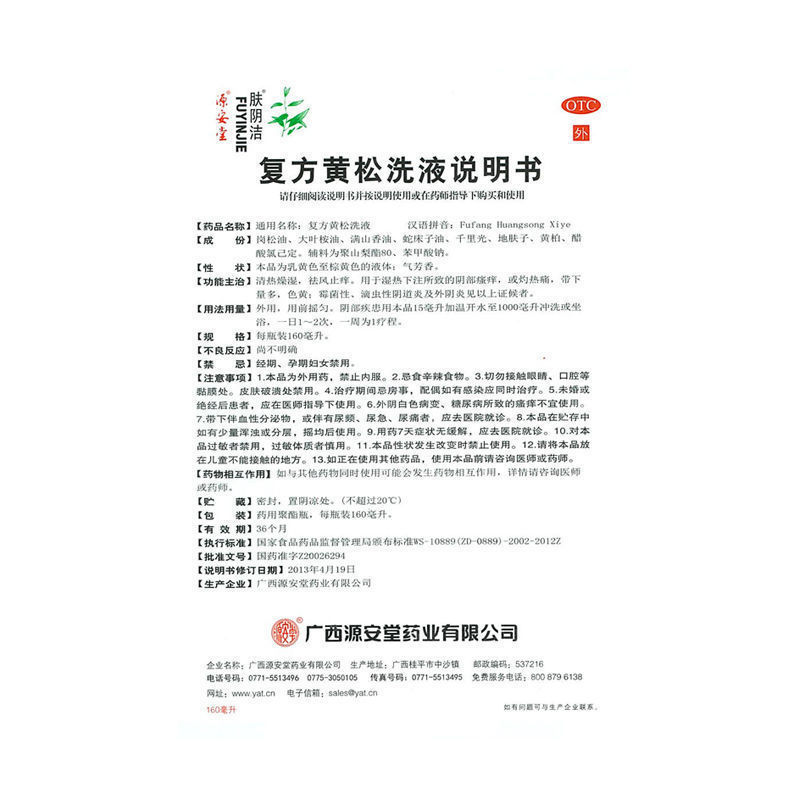 - 通用名称:复方黄松洗液
