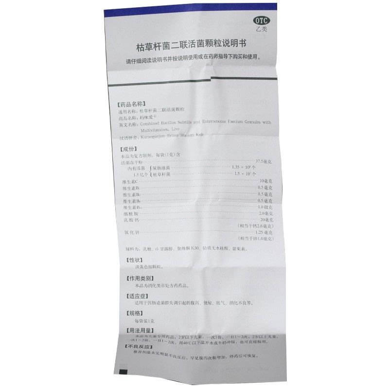 - 用法用量:本品为儿童专用药品,2岁以下儿童,一次1袋,一日1~2次;2岁以上儿童,一次1~2袋,一日1~2次,用40℃以下温开水或牛奶冲服,也可直接服用。