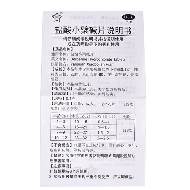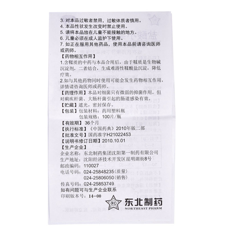 - 商品名称:东北制药 盐酸小檗碱片 0.1g*100片