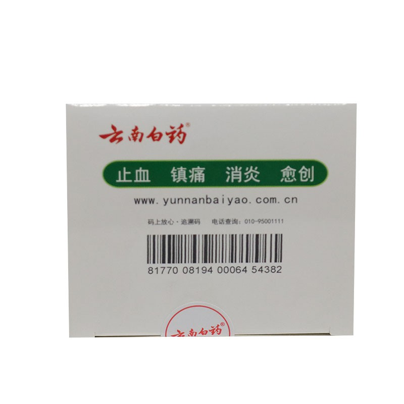 - 用法用量:清洁创面,从防粘胶纸上揭下云南白药创可贴,使药带贴于创面,松紧适当即可。