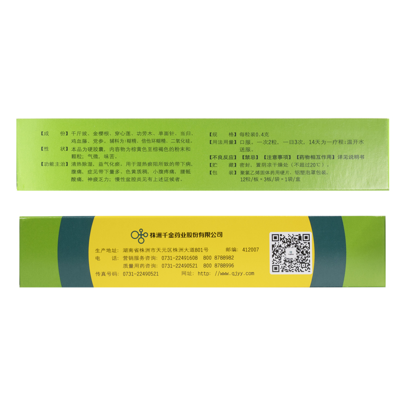 • 适应症/功能主治:带下量多,色黄质稠,小腹疼痛,慢性盆腔炎等
