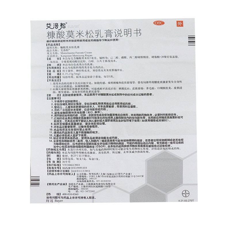 - 商品名称:艾洛松 糠酸莫米松乳膏 5g5g/支