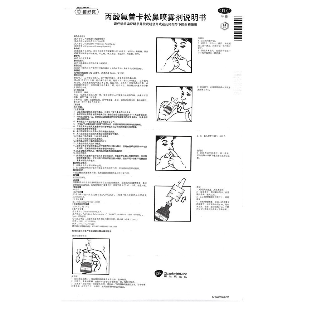 - 商品名称:辅舒良 丙酸氟替卡松鼻喷雾剂 120喷/瓶