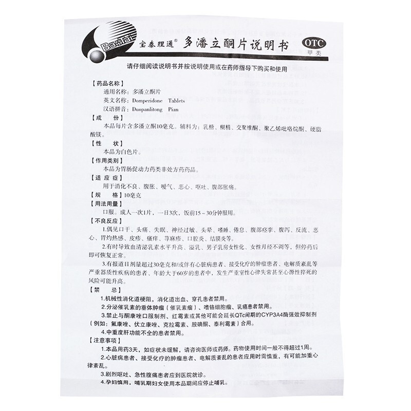- 商品名称:宝泰理通 多潘立酮片 10g*30片/盒