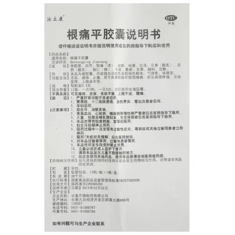 - 通用名称:根痛平胶囊