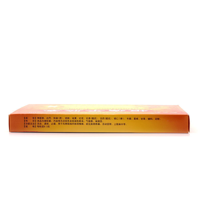 - 适应症/功能主治:活血、通络、止痛;用于风寒阻络所致颈,腰椎病,以及肩、颈疼痛,活动受限,上肢麻木。