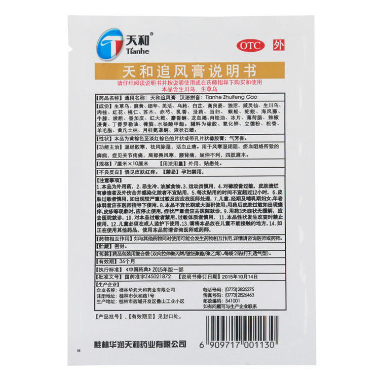 - 通用名称:天和追风膏