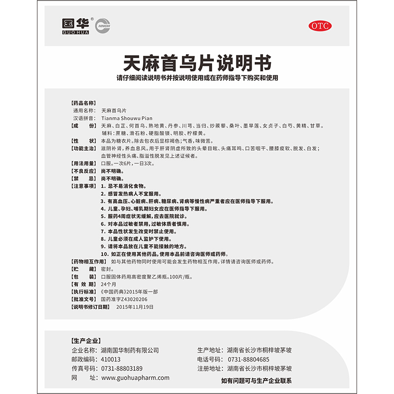 - 商品名称:国华 天麻首乌片 0.25g*100片