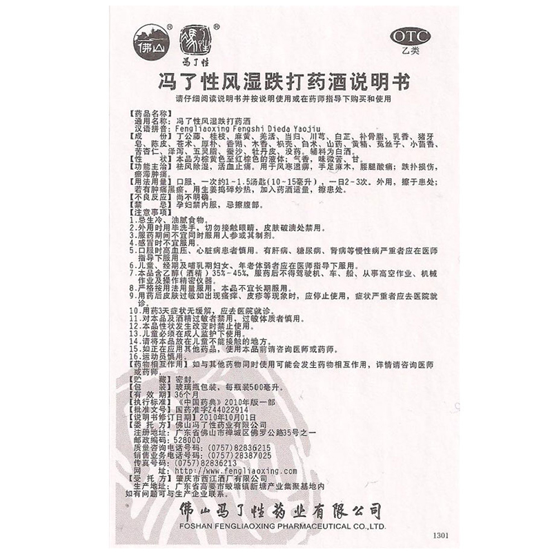• 商品名称:佛山 冯了性风湿跌打药酒 500ml/瓶