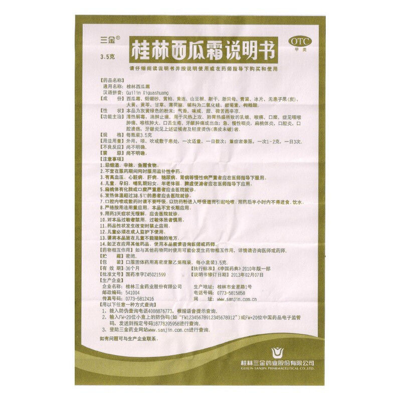 - 商品名称:三金 桂林西瓜霜 3.5g/瓶