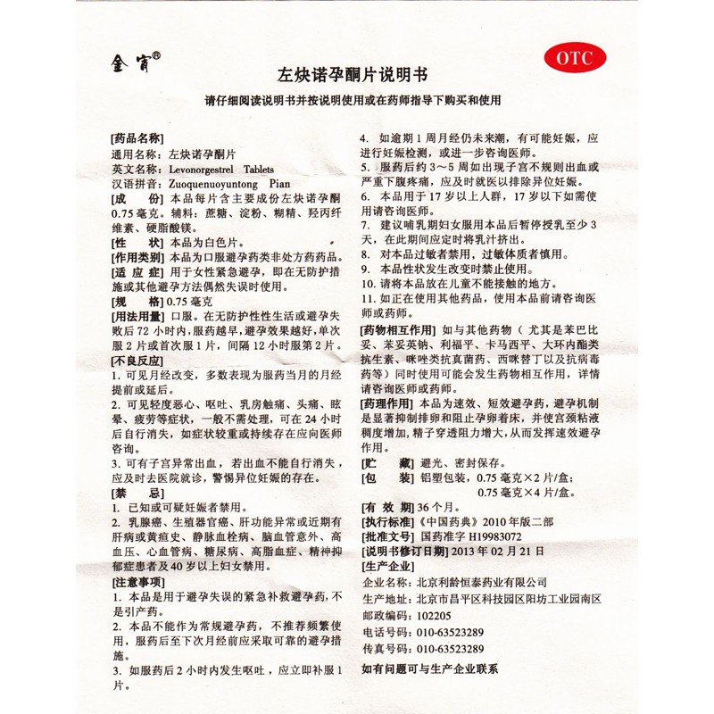 今宵 左炔诺孕酮片