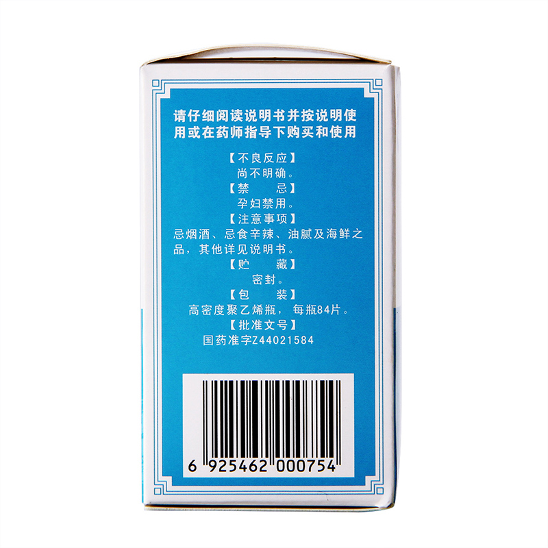 - 用法用量:口服,一次4片,一日3次。