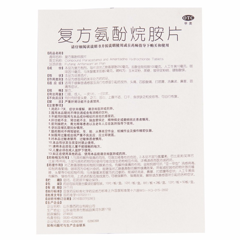 - 商品名称:鲁西 复方氨酚烷胺片 12片/盒