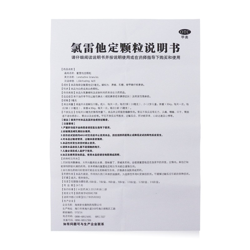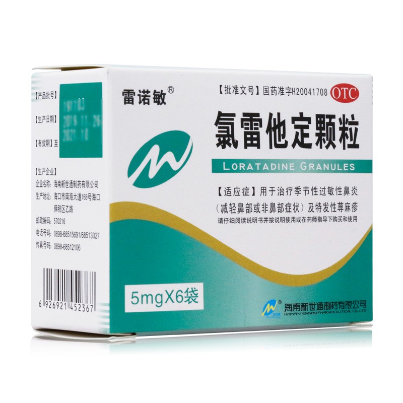 - 商品名称:雷诺敏 氯雷他定颗粒 5g*6袋/盒