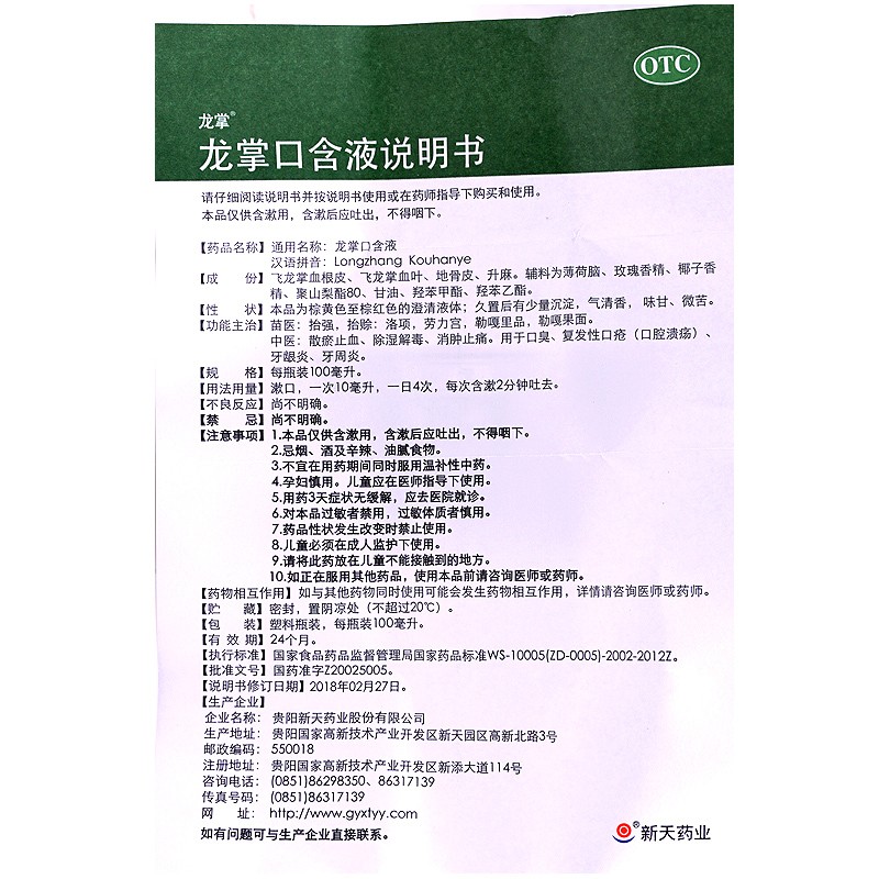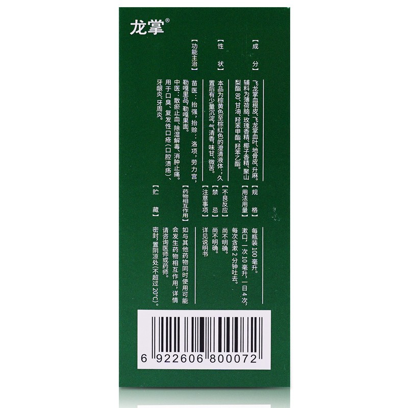 - 用法用量:一次10毫升,一日4次,每次含漱2分钟吐出