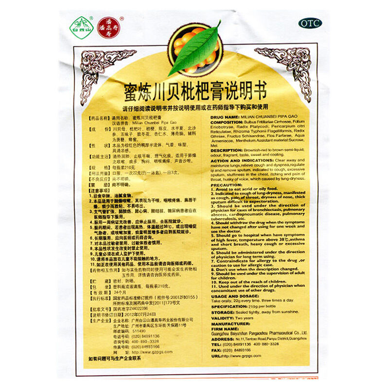 - 生产企业:广州白云山潘高寿药业股份有限公司
