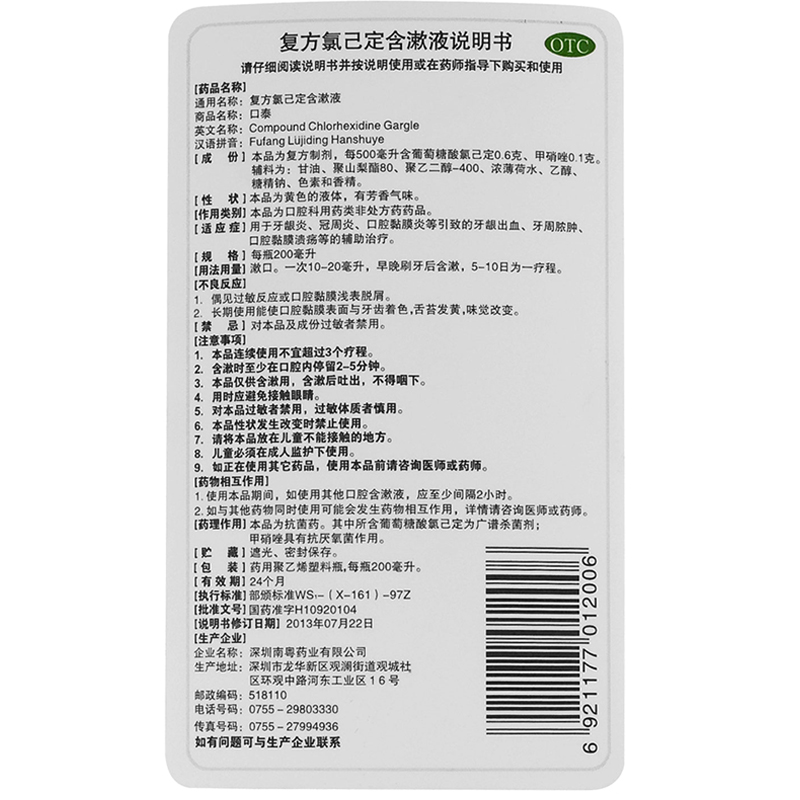 - 商品名称:口泰 复方氯己定含漱液 200ml/瓶