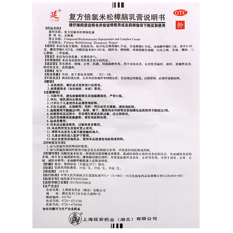 - 商品名称:延字牌 复方倍氯米松樟脑乳膏 10g/支