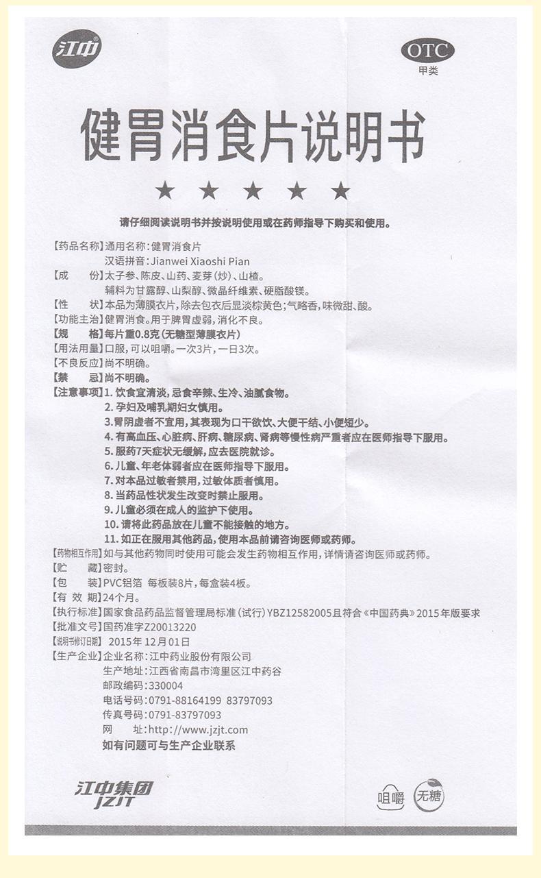 - 商品名称:江中 健胃消食片(无糖) 0.8g*32片/盒