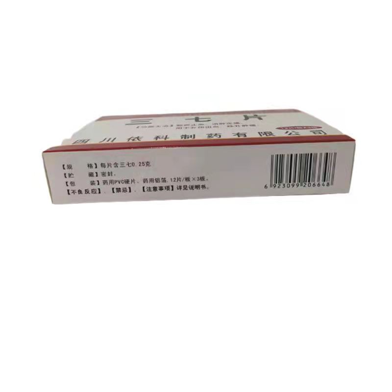 - 商品名称:金盖克 蜀中 三七片 0.25g*12片*3板/盒