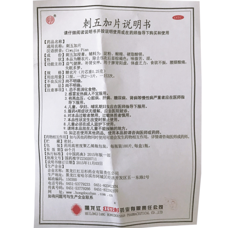 - 商品名称:欢康 刺五加片 0.25g*100片/盒