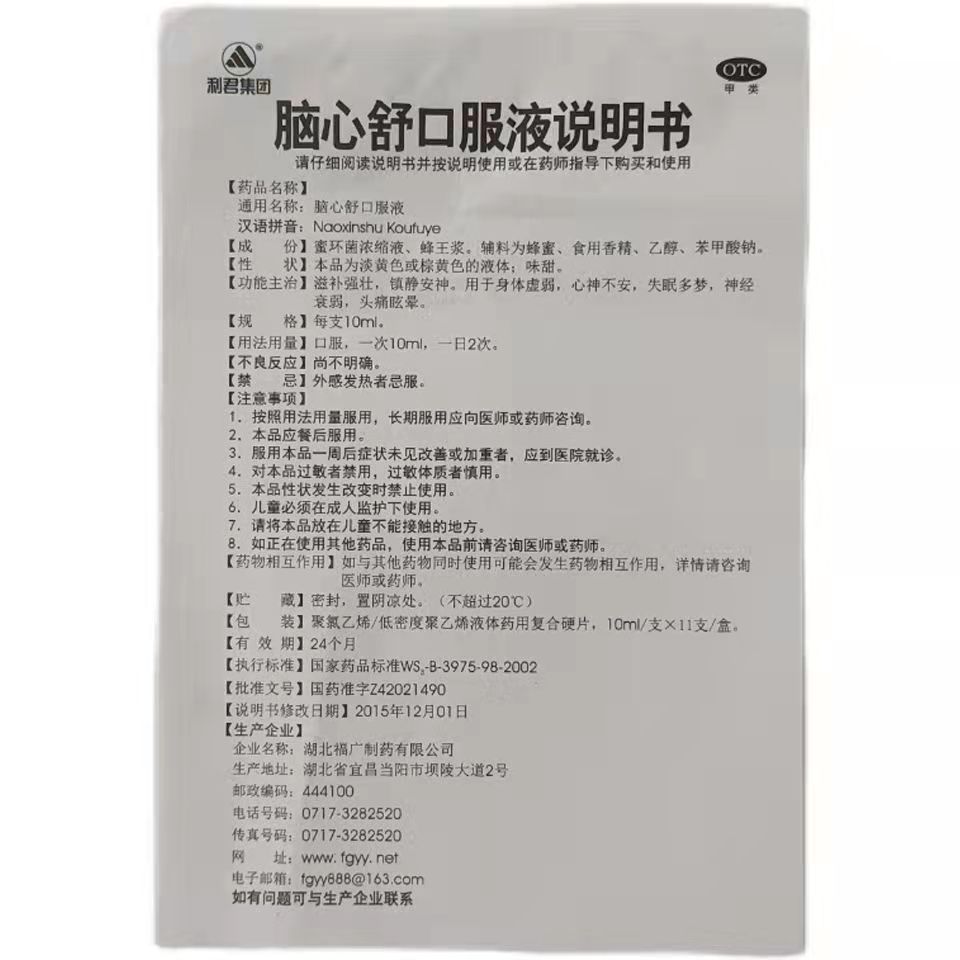 • 商品名称:利君集团 脑心舒口服液 10ml*11支/盒