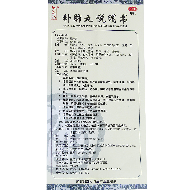 - 适应症/功能主治:补肺益气,止咳平喘。用于肺气不足,气短咳喘,咳声低弱,干咳痰粘,咽干舌燥。