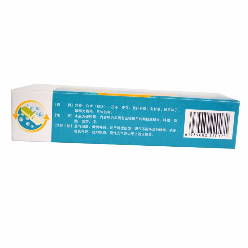 - 适应症/功能主治:用于脾虚痰盛、肾气不固所致的咳嗽、痰多、喘息气促、 动则喘剧;慢性支气管炎、肺气肿、支气管哮喘见上述症候者.