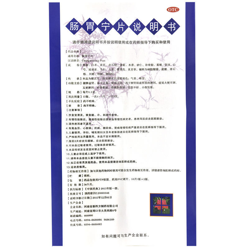 - 商品名称:四方箄 肠胃宁片 0.3g*18片*2板/盒