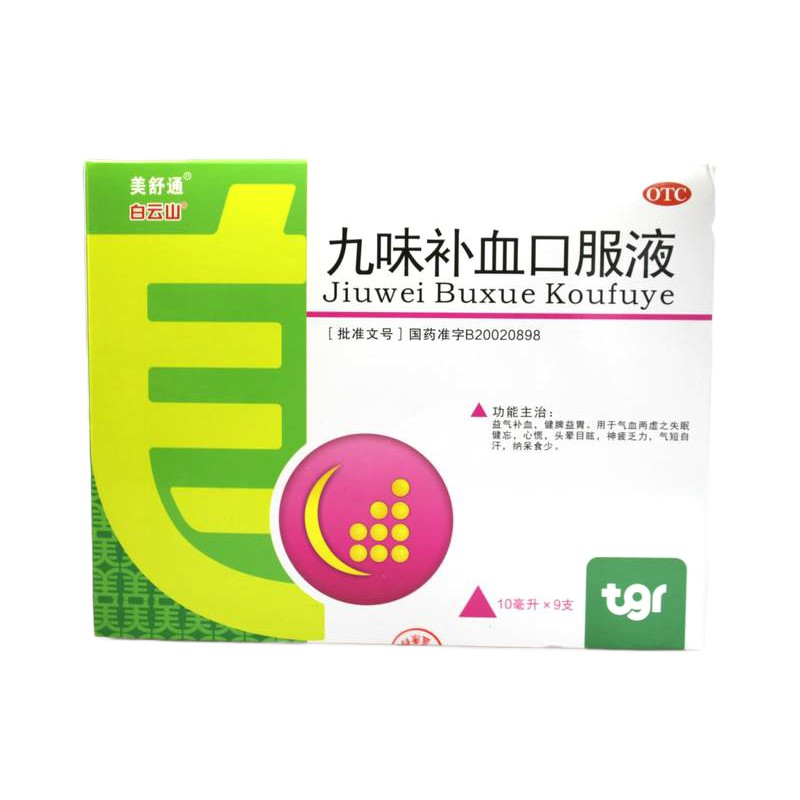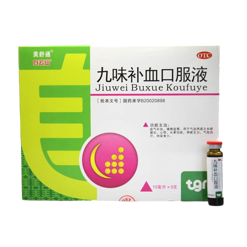- 商品名称:白云山 九味补血口服液 10ml*9支/盒