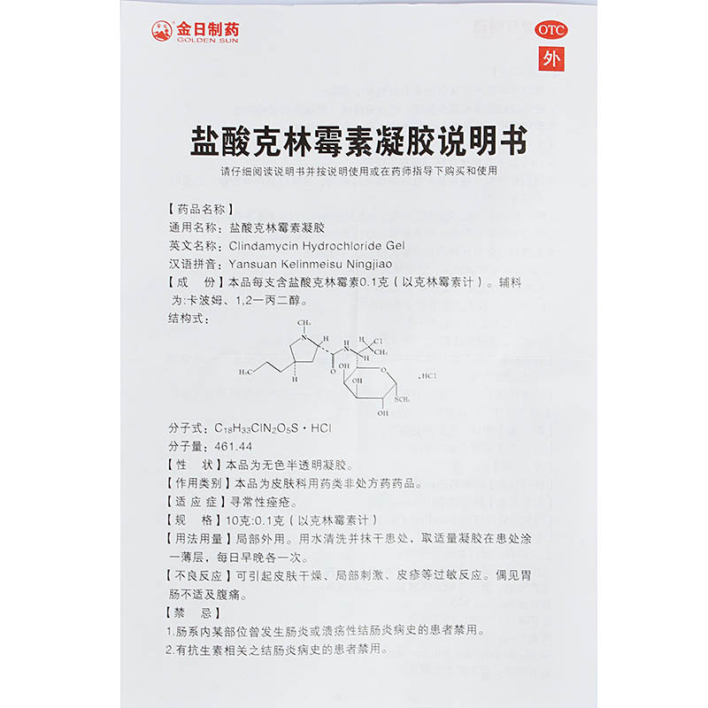 - 商品名称:金日制药 盐酸克林霉素凝胶 10g/支