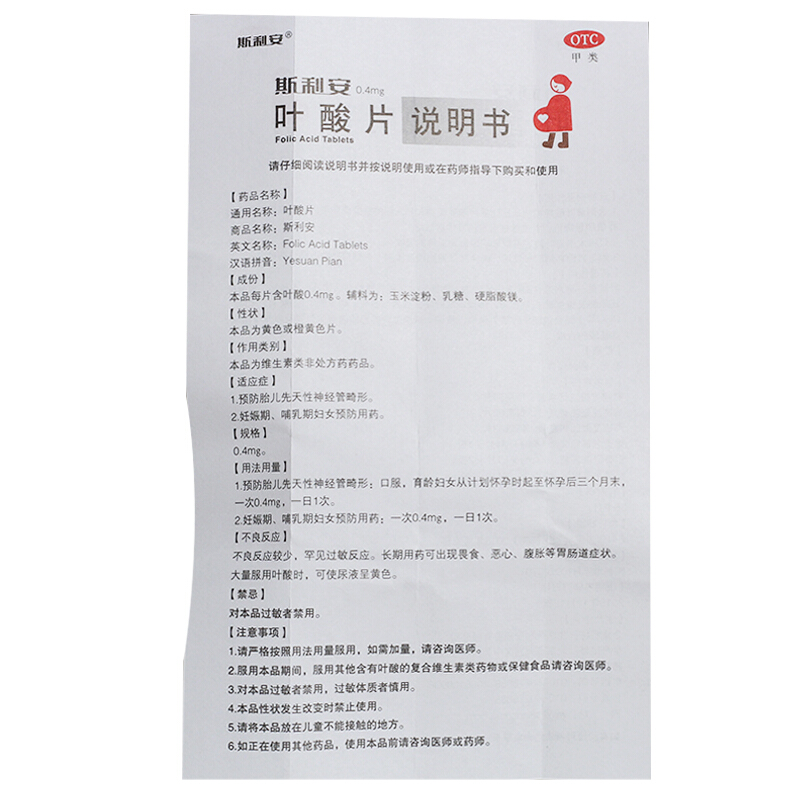 - 商品名称:斯利安 叶酸片 0.4mg*93片