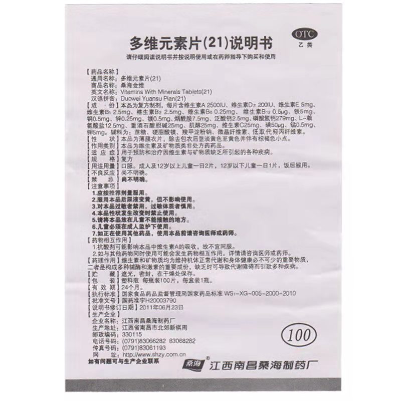 - 商品名称:桑海金维 多维元素片(21) 100片/瓶