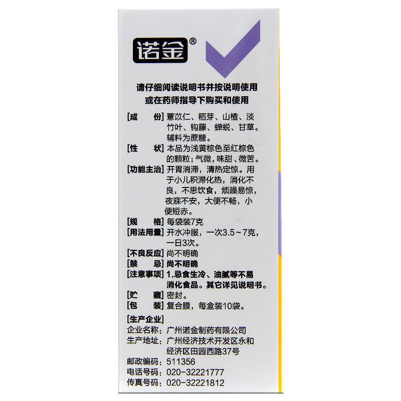 - 商品名称:诺金 小儿七星茶颗粒 7g*10袋