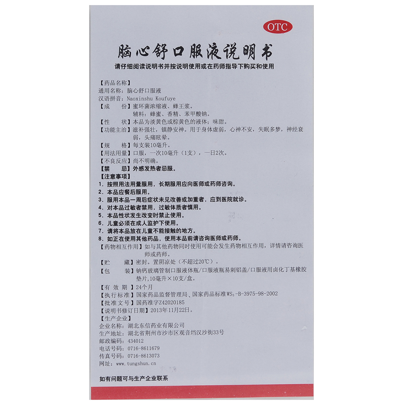 - 通用名称:脑心舒口服液(玻璃瓶)