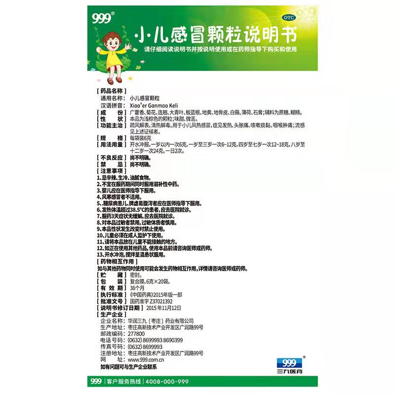 - 商品名称:999 小儿感冒颗粒 6g*20袋