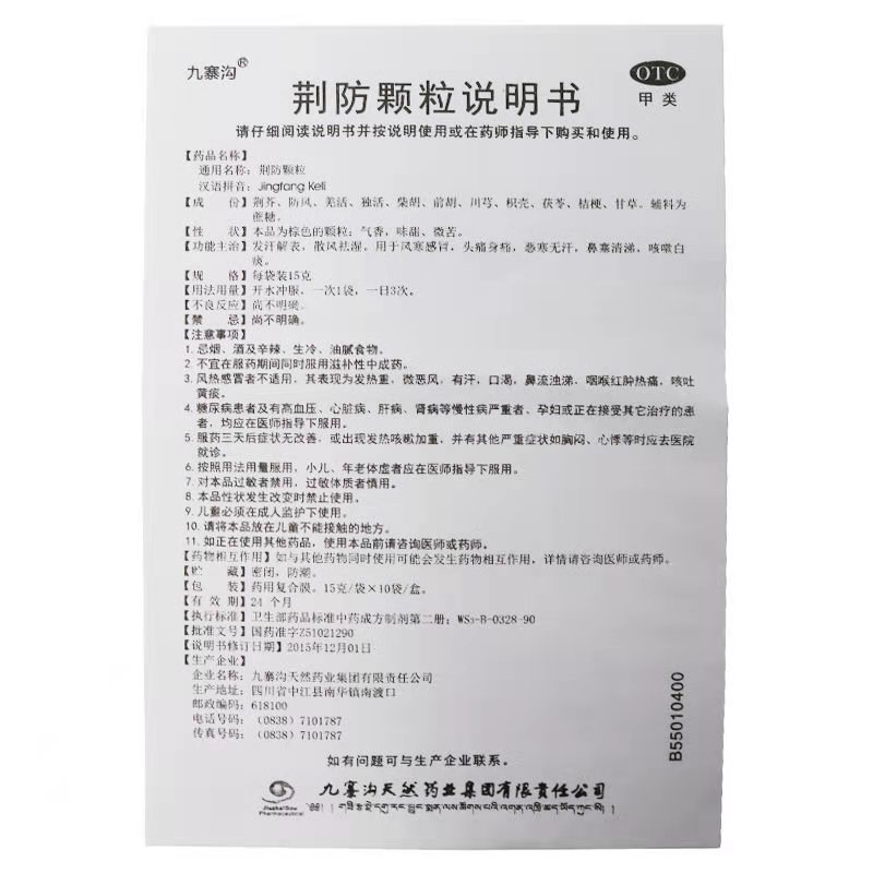 - 商品名称:九寨沟 荆防颗粒 15g*10袋/盒