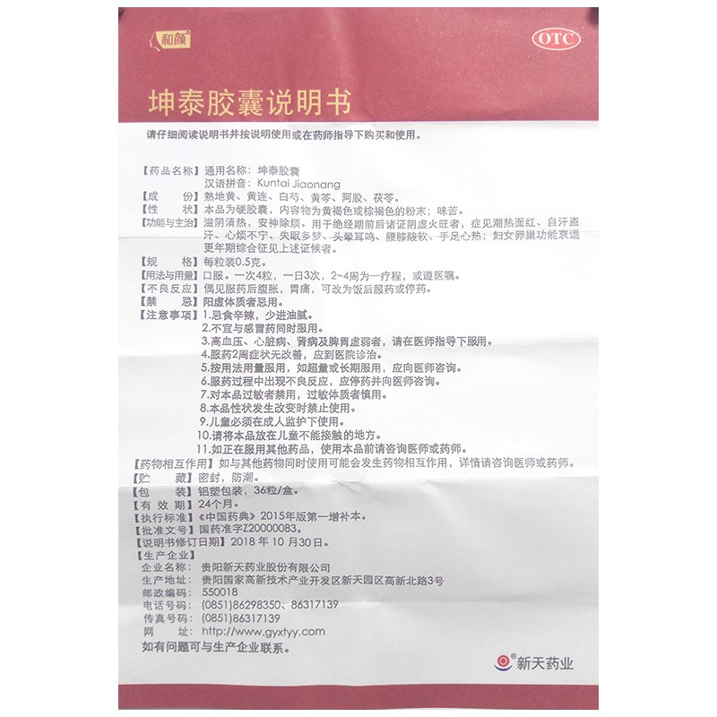 - 商品名称:和颜 坤泰胶囊 12粒*3板/盒