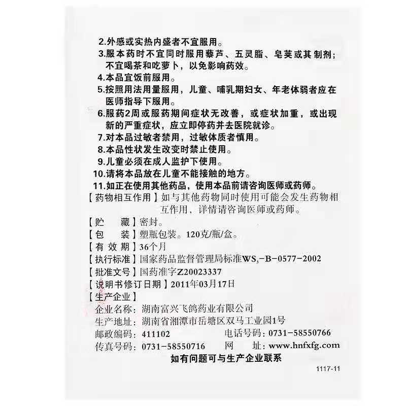 - 生产企业:湖南富兴飞鸽药业有限公司