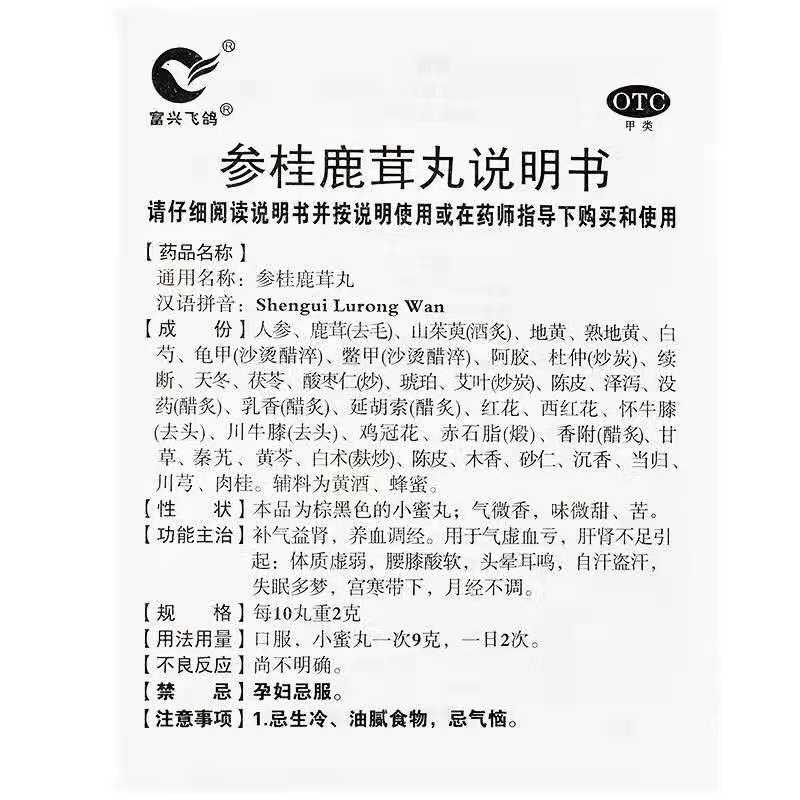- 商品名称:富兴飞鸽 参桂鹿茸丸 120g/瓶