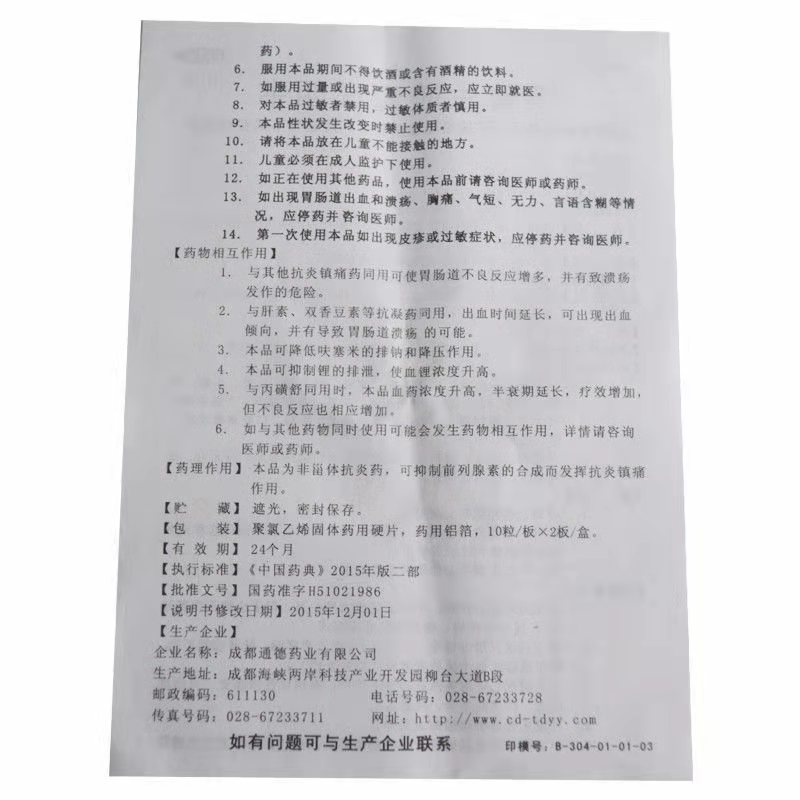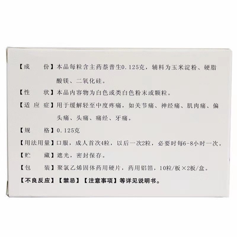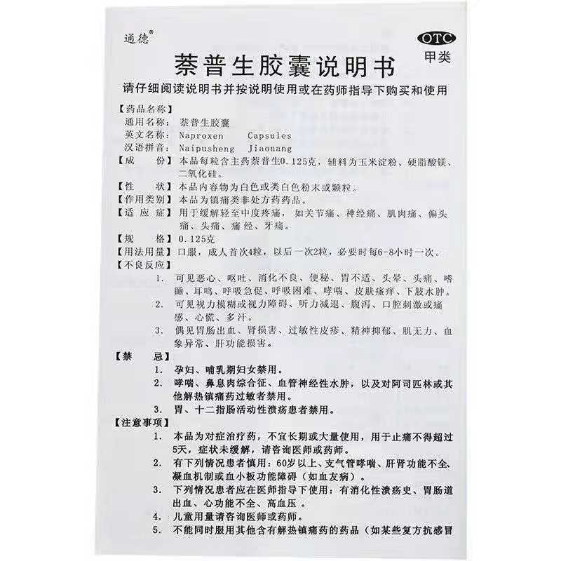 - 商品名称:通德 萘普生胶囊 0.125g*20粒/盒