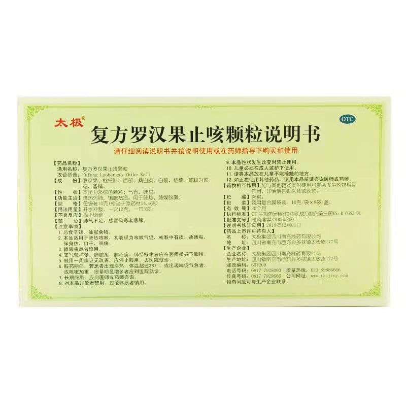 - 商品名称:太极 复方罗汉果止咳颗粒 10g*8袋/盒